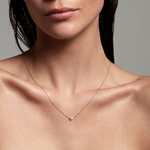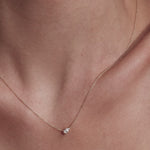 The Bellus Pear Necklace is crafted in 9K Gold (Yellow, Rose or White). The design features a 0.20pt pear-shaped diamond, set on a 9K Gold, 45mm chain. Pair this timeless piece with our classic Milium Pear Earrings.