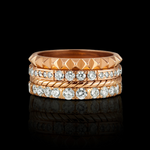 In addition to the diamond bands, the Apex Stack Ring also includes two additional rings. The first of these features a striking pyramid design, which brings a sense of texture and depth to the piece. The second ring a twist design brings a sense of balance and harmony to the overall stack.