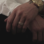 Introducing the Apex Stack Ring, a modern and sophisticated alternative to the traditional wedding ring. This unique design was created by Drew Brown, the founder of BrownHaus, as his personal wedding band.