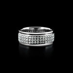 One of our finest wedding bands for men. The Jewelled Wedder is crafted from 18K White Gold, and features approximately 100 6x1.5mm fsi diamonds, depending on finger size.