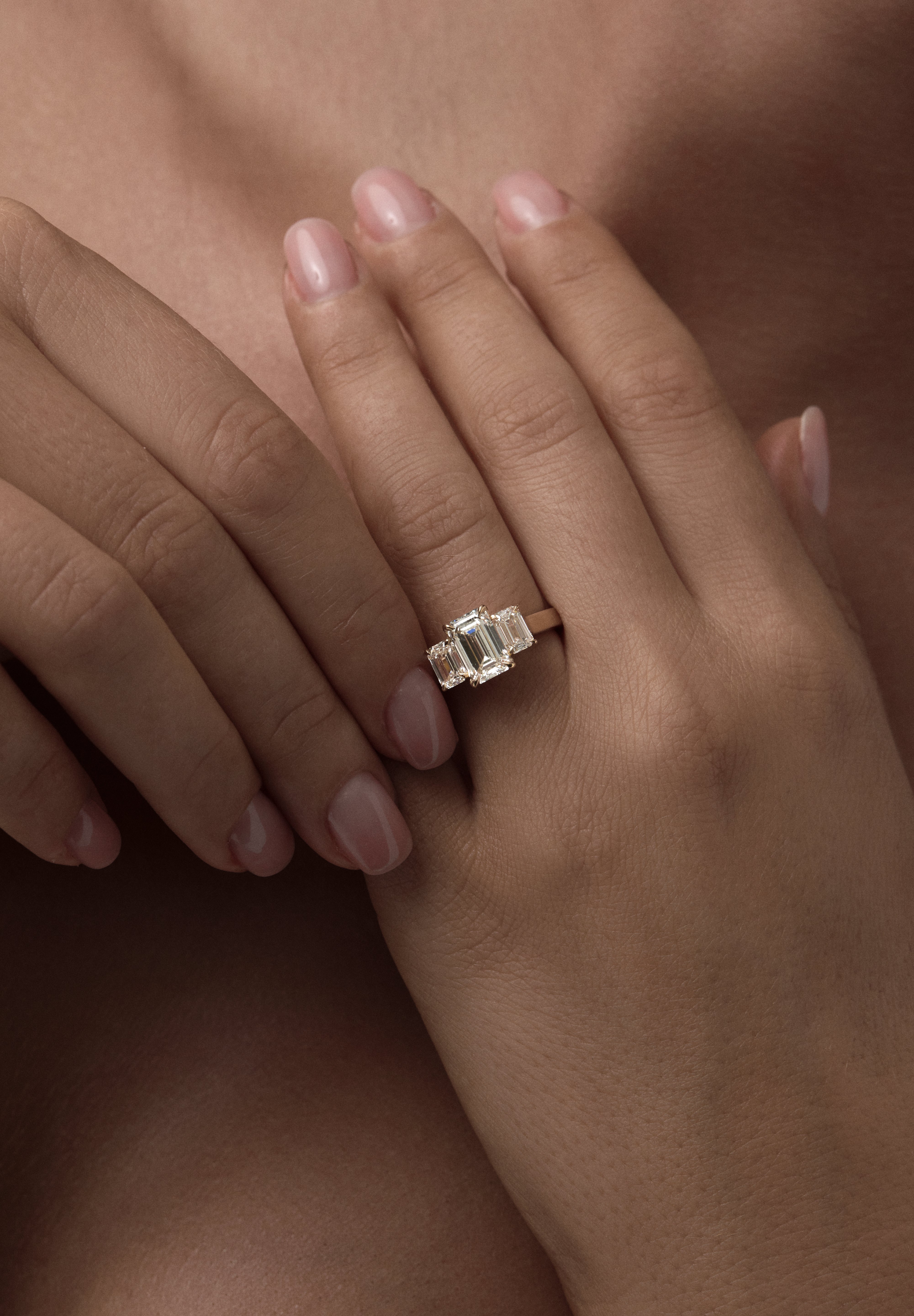 • 2 x side Emerald Cut Diamonds (1 x 0.53pt & 1 x 0.55pt)